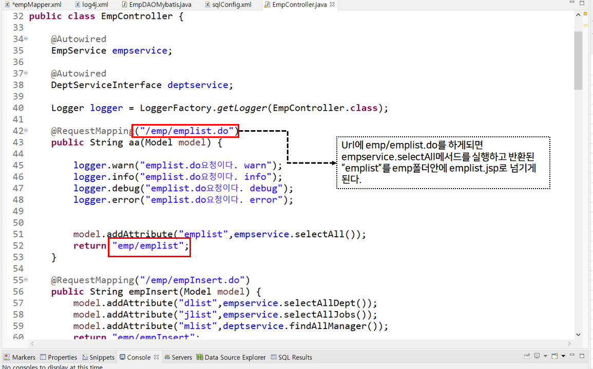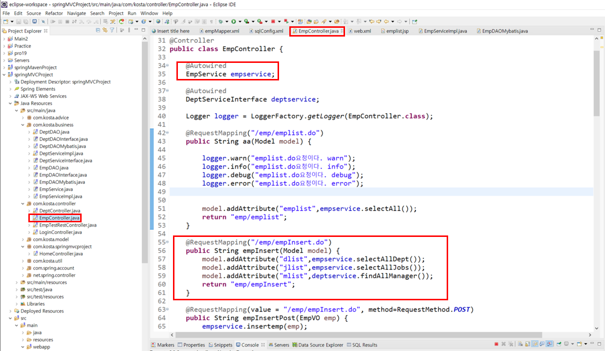 empInsert.do Post방식 URL은 EmpController에서 아래와 같이 코드해주었다.