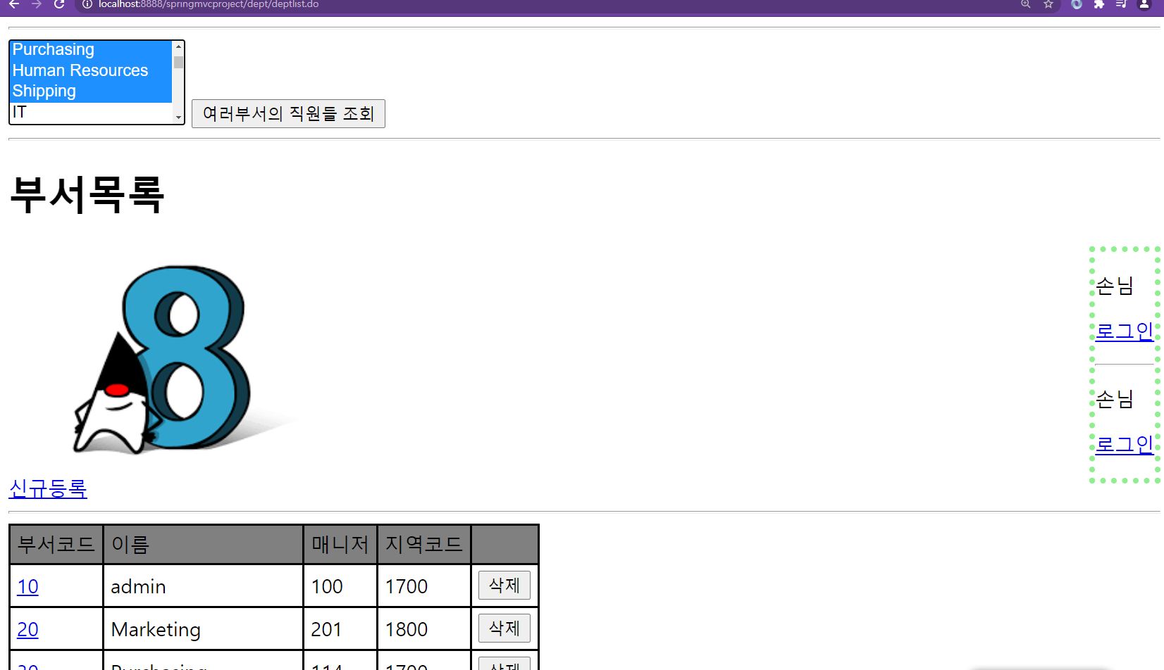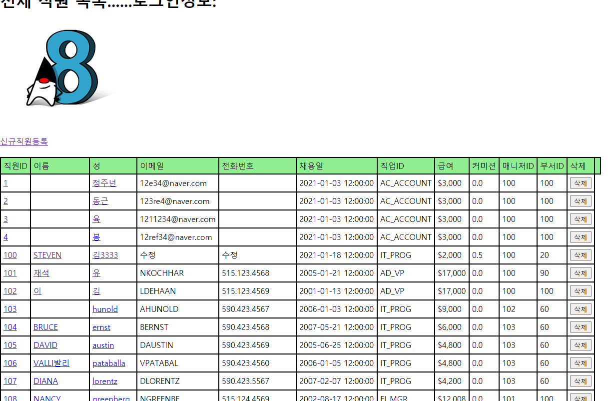 그렇게 해서 emplist에 출력되면 아래와 같다. 해당부서의 직원리스트만 잘 출력되는 것을 볼수 있다.