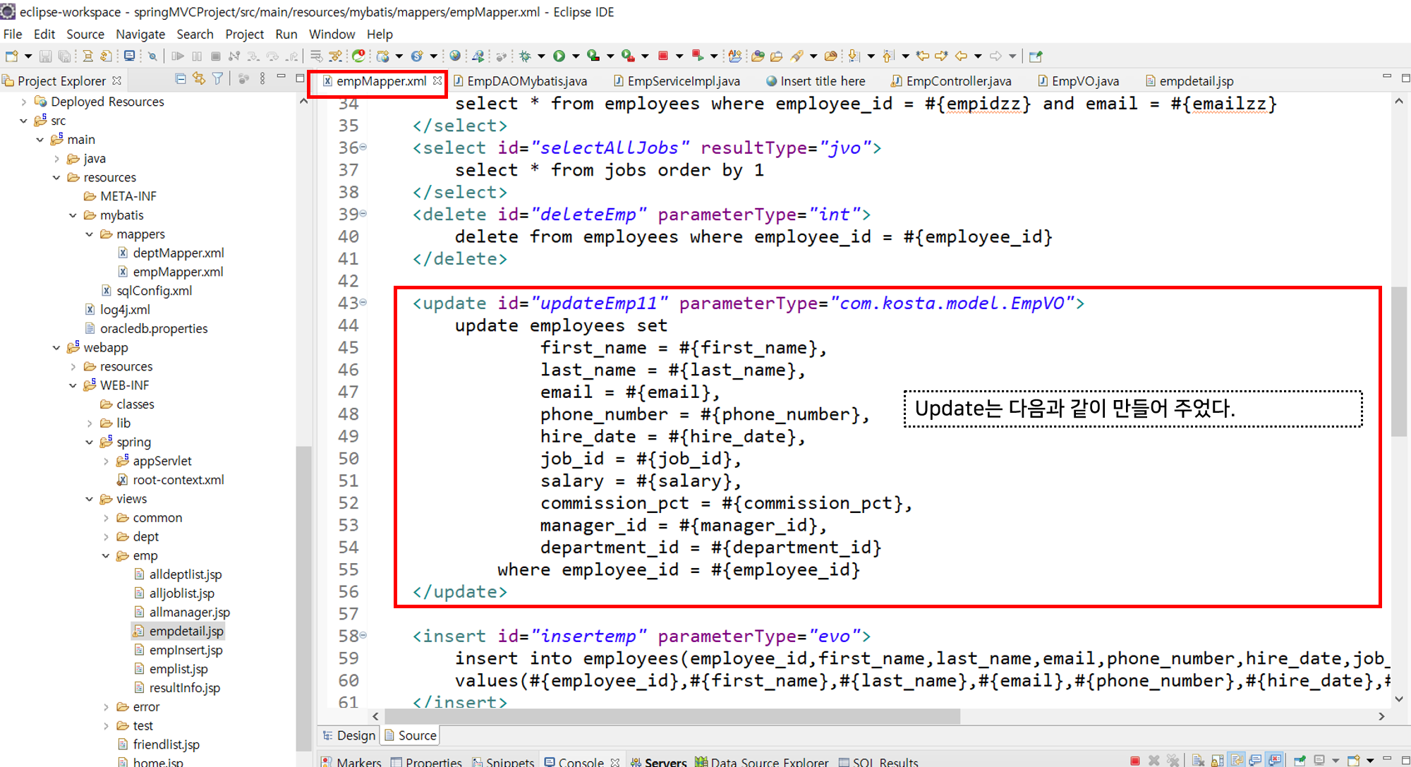 <update id="updateEmp11" parameterType="com.kosta.model.EmpVO">