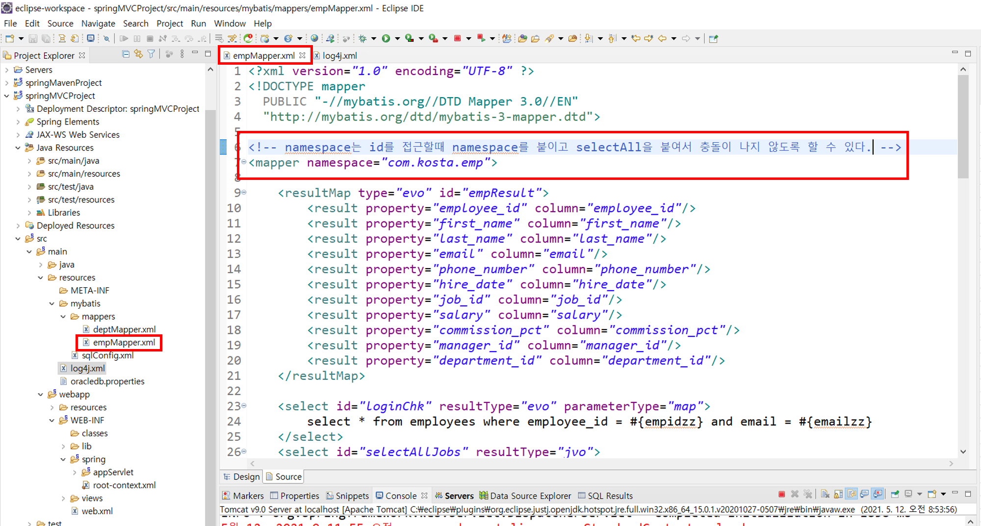 그리고 empdaomybatis에서 해당 메서드를 찾는다.