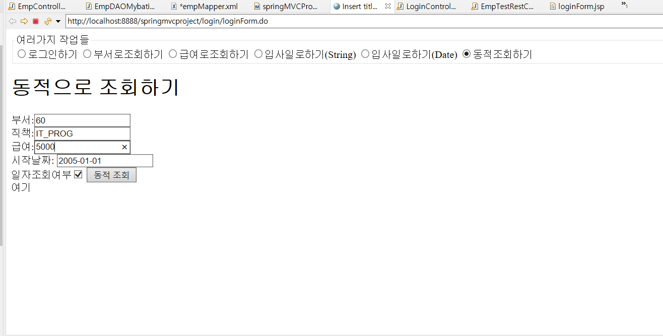 해당 조건에 해당하는 것만 잘 동적조회 되는 것을 확인 할 수 있다.