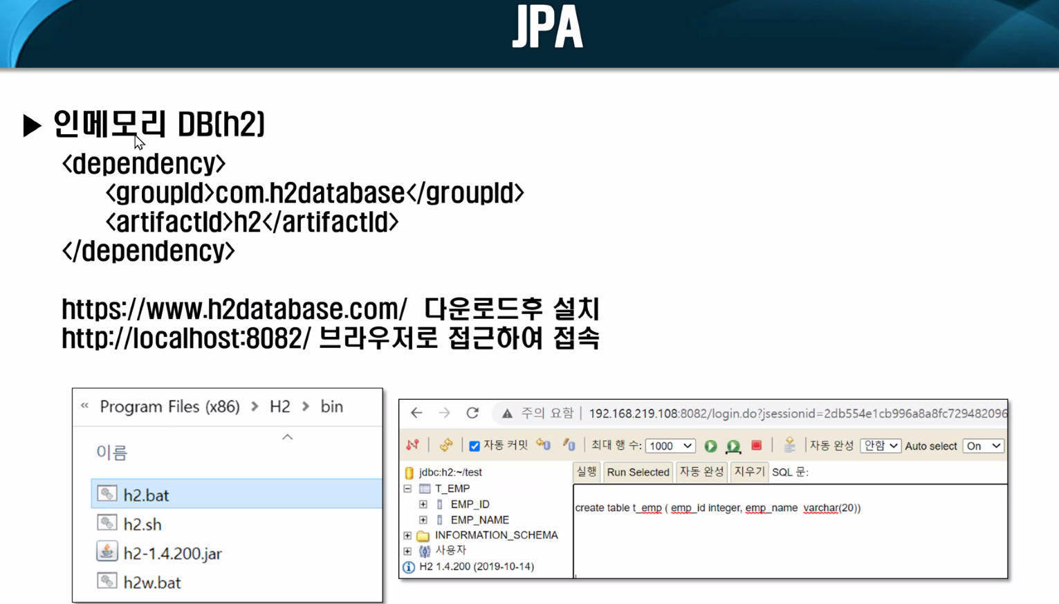 아래 인메모리 관련된것은 아직 하지 않는다. 내용만 알아두도록 하자.