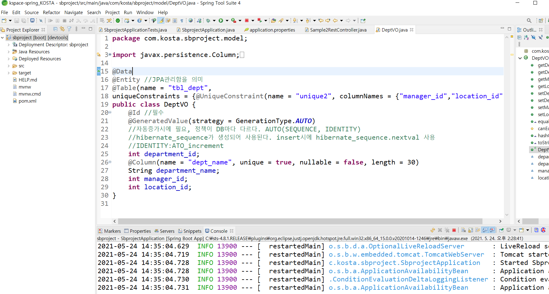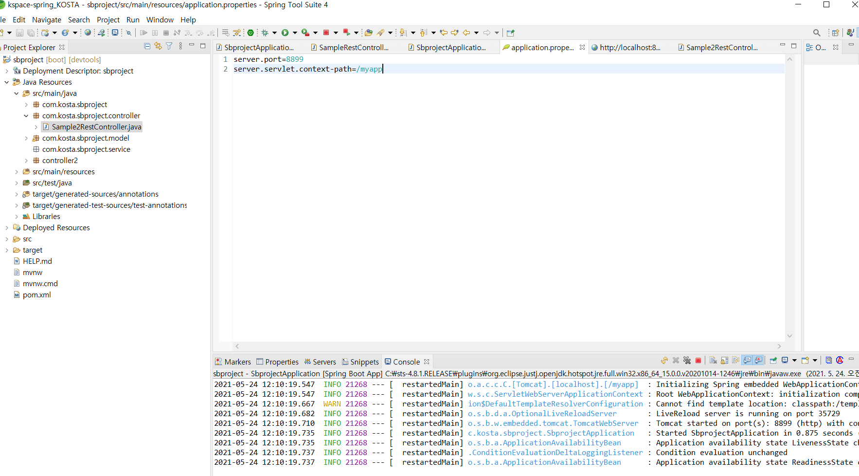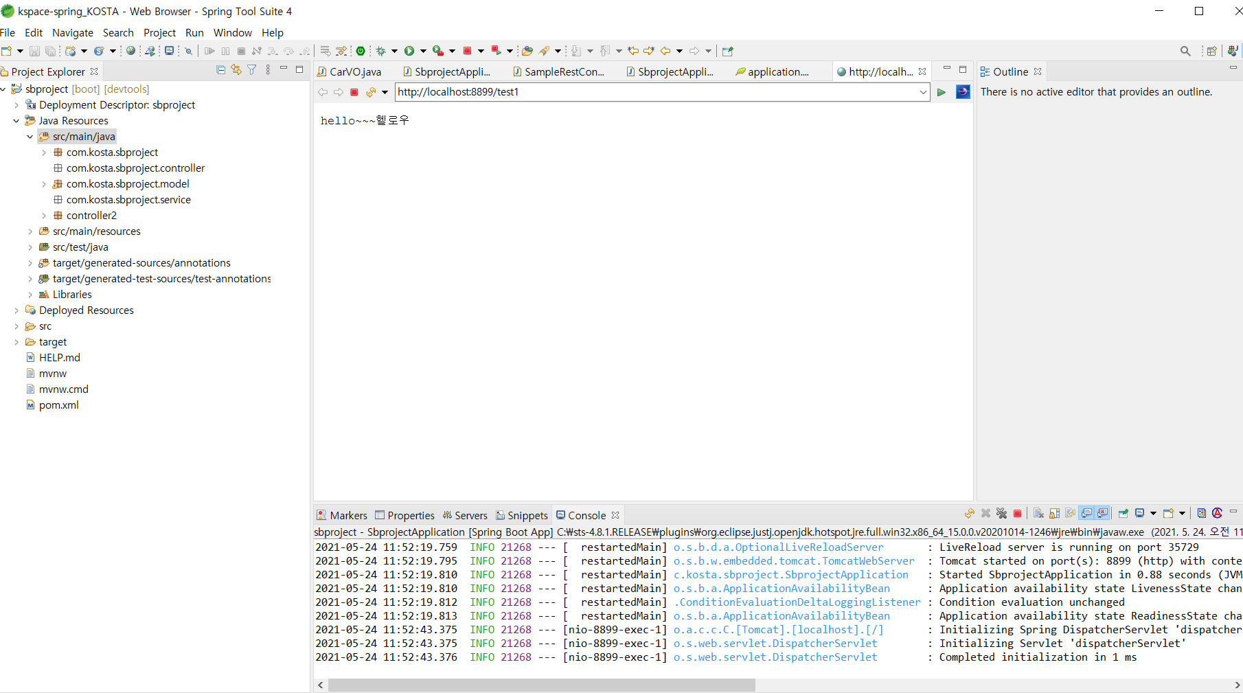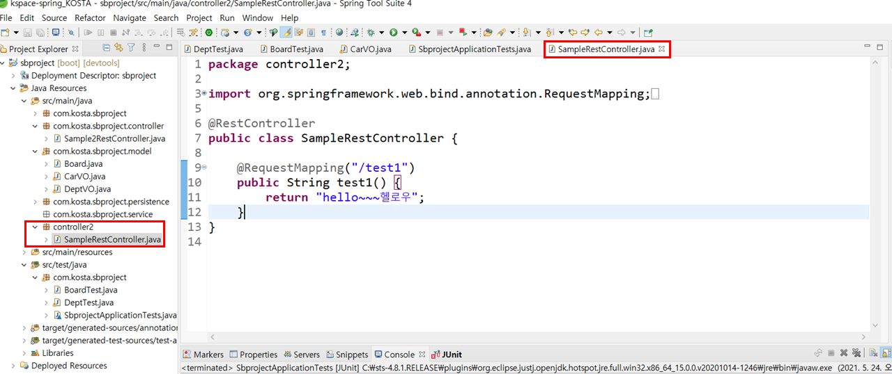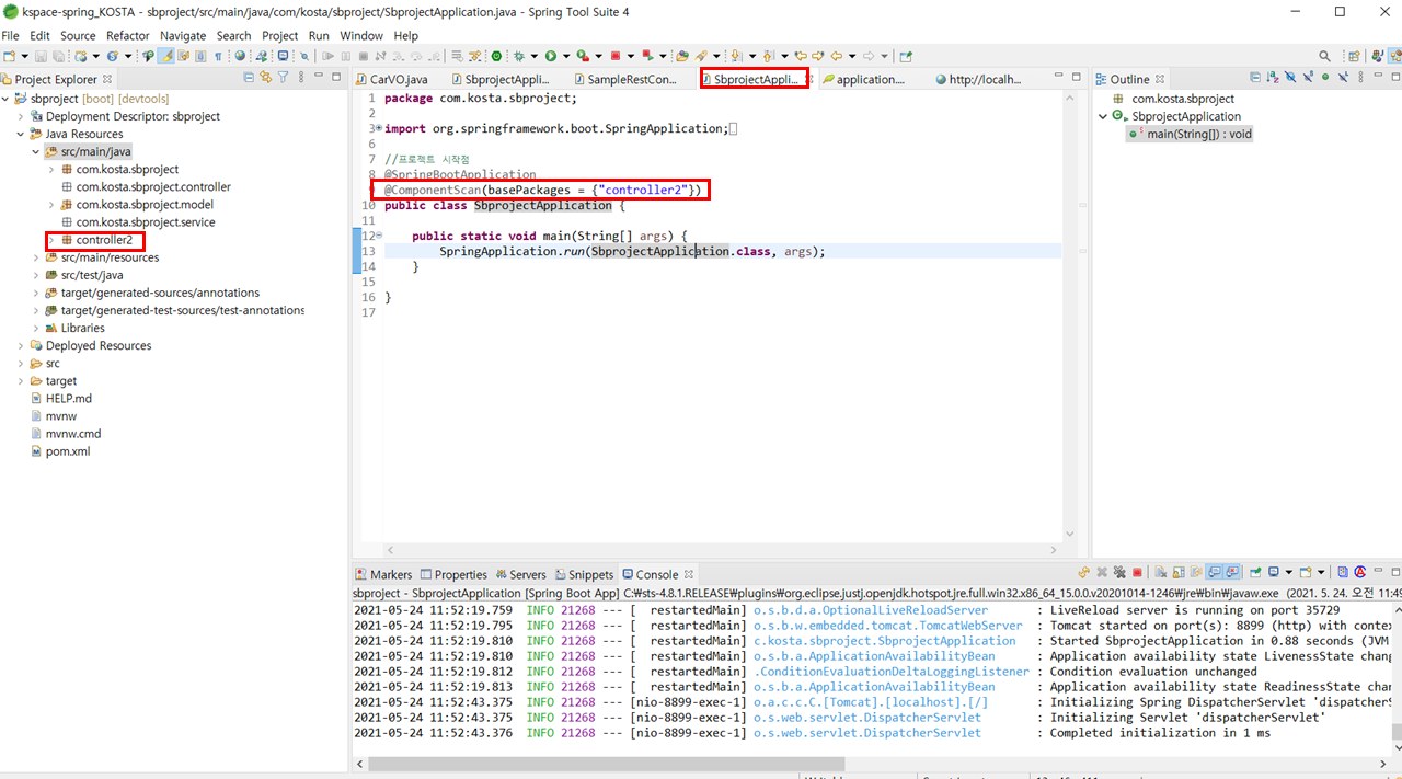 sbproject의com.kosta.sbproject.controller에 있는게 아니라 다른패키지에 있다면component를 추가해서실행해주면 잘된다.