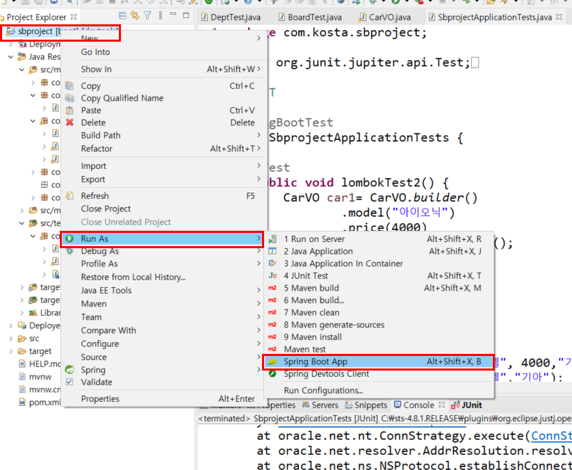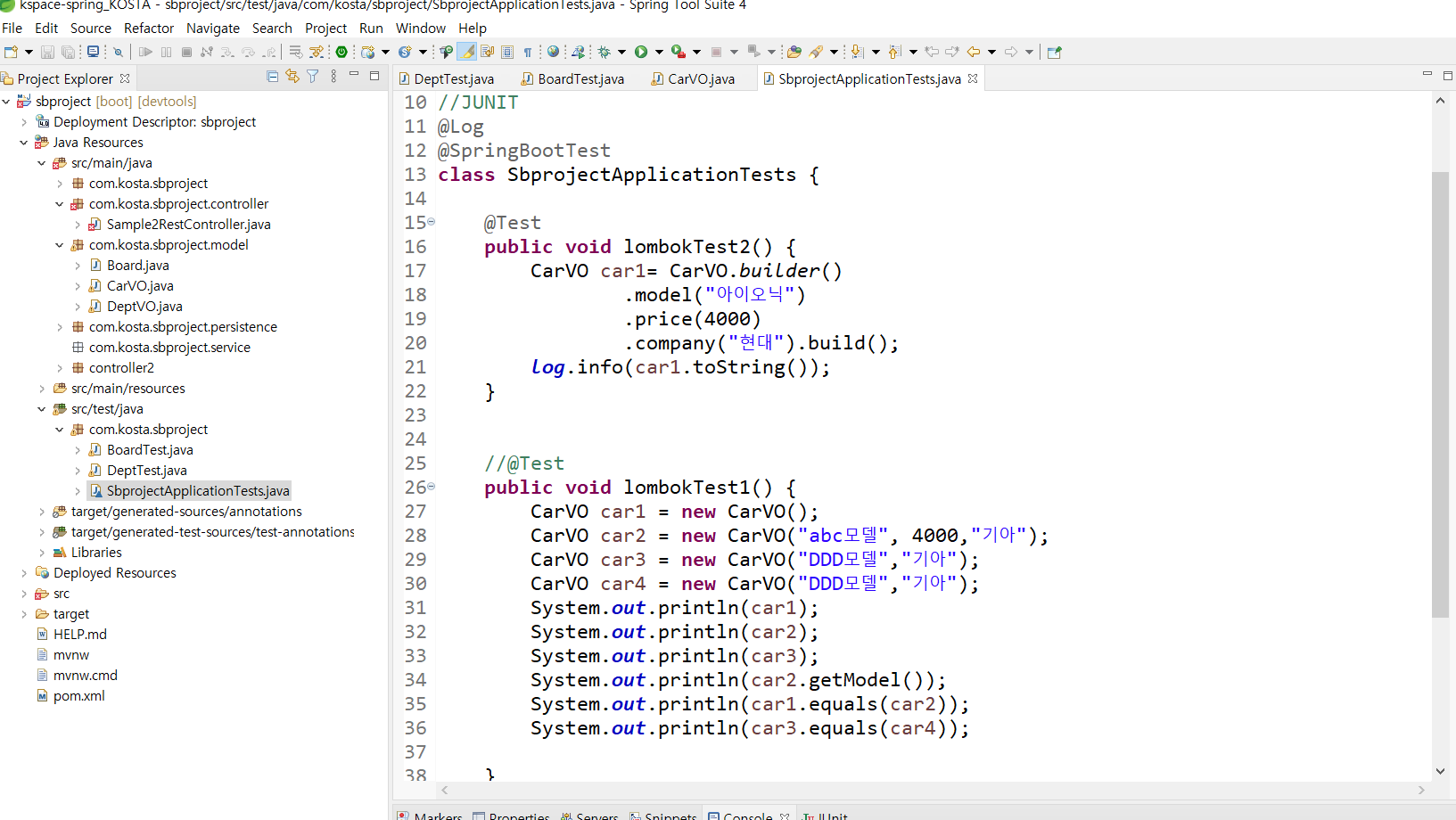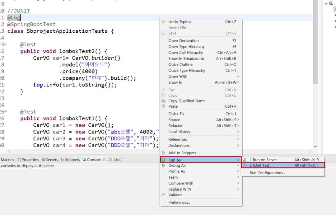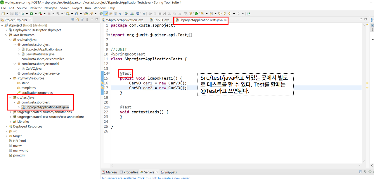 *참고로 springFramework도 junttest가 가능하지만 우리는 sts에서 실행해보았다.
