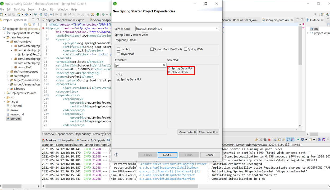 아래 Spring Data JPA와 Oracle Driver를 추가해주었다.