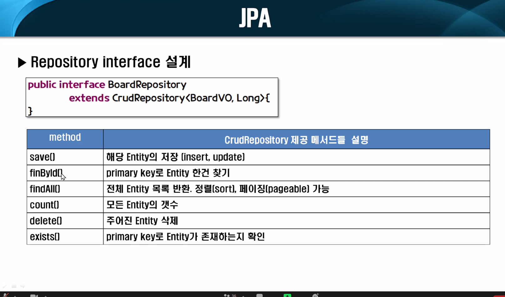 BoardRepsitory를 crudRepository 인터페이스를 구현했다.