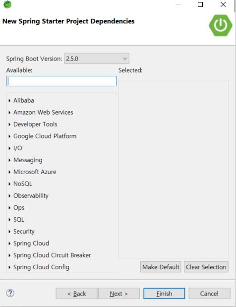 creat new spring starter project를 누른다음 아래철머 세부적인 부분을 설정해주었다. Next를 누른다.