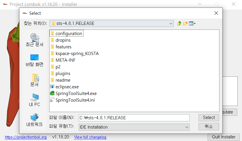 install을 완료하면 아래 사진처럼 lombok.jar가 들어간것을 확인할 수 있다.